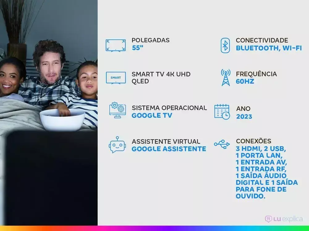 Características: Smart, HDR10+, Dolby Vision Atmos, Reconhecimento de voz